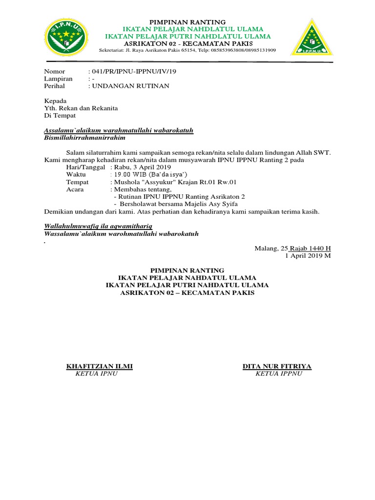 | Judul: Contoh Surat Undangan Ipnu Ippnu Sample Surat Undangan |
